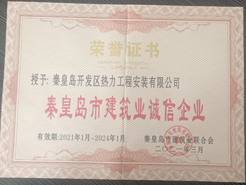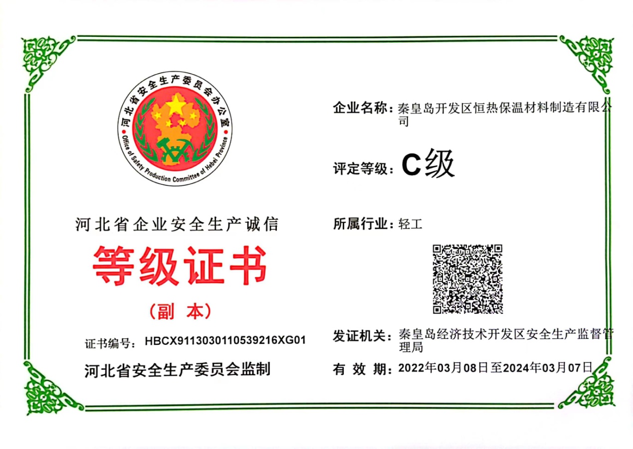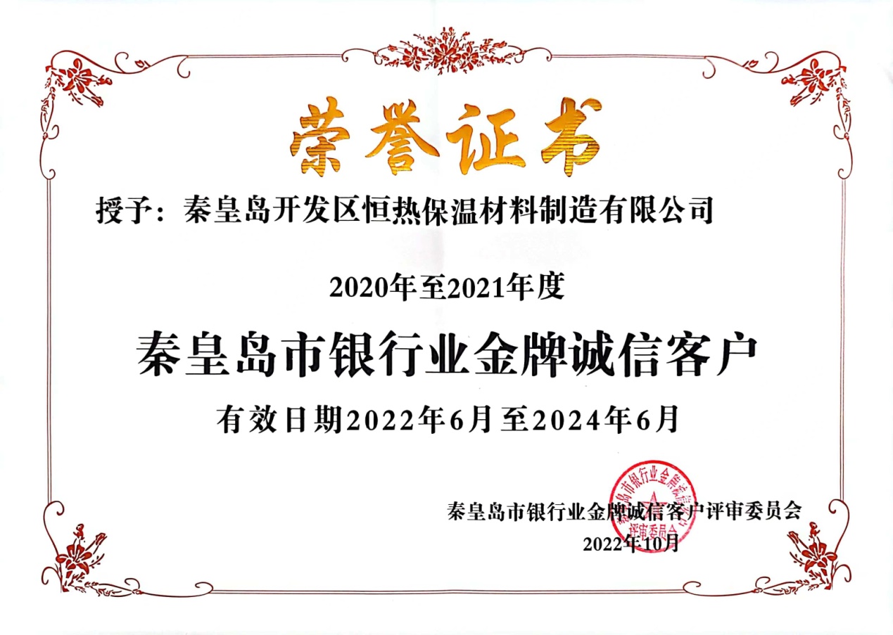 恒熱保溫秦皇島市銀行金牌誠信客戶