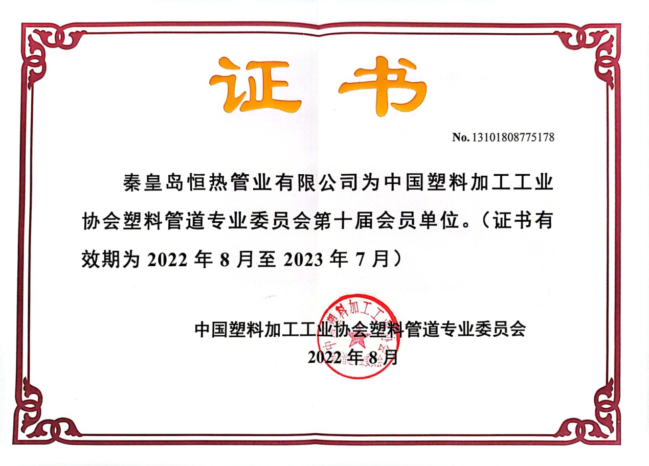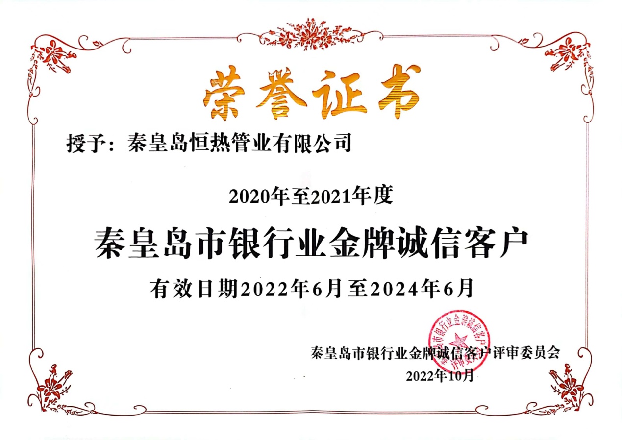 恒熱管業秦皇島市銀行金牌誠信客戶