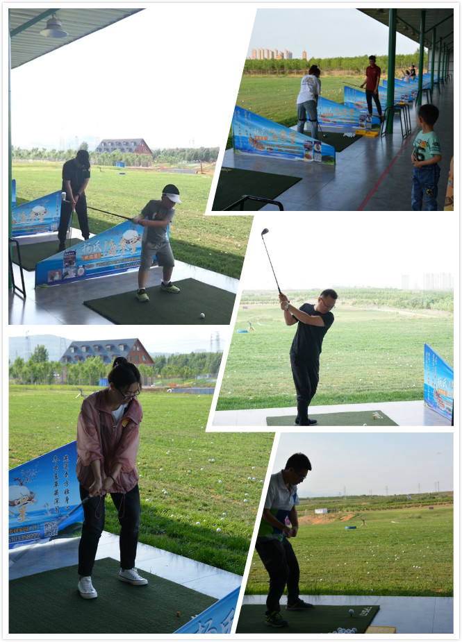 高爾夫活動場地非常受歡迎,在專業教練的指導下,孩子們學的非常認真,別看孩子們小,但是揮起高爾夫球桿,絲毫不含糊,握桿的姿勢非常標準。大人們也躍躍欲試,球場上留下了他們矯健的身影,握桿、揮球動作一氣呵成。