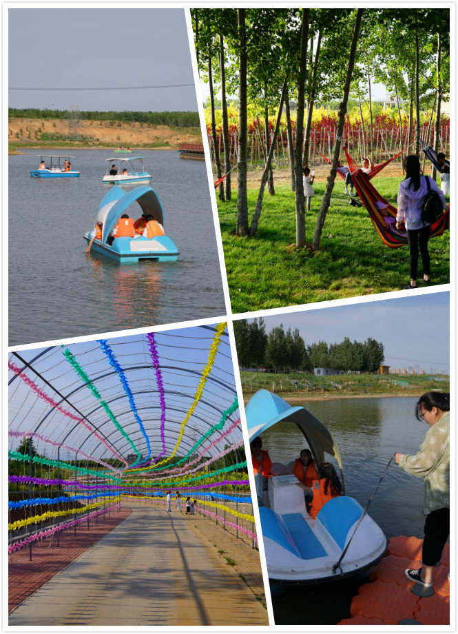 與高爾夫球場地、碰碰車場地不同的是,在劃船場地、兒童營地,有一家三口愜意的劃船的,有躺在舒適的吊床上休息的,還有在兒童營地草坪上三兩玩耍的孩子們。