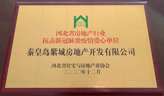 紫城地產代表恒熱集團獲得 河北省房地產行業抗擊新冠肺炎疫情愛心單位榮譽稱號