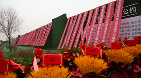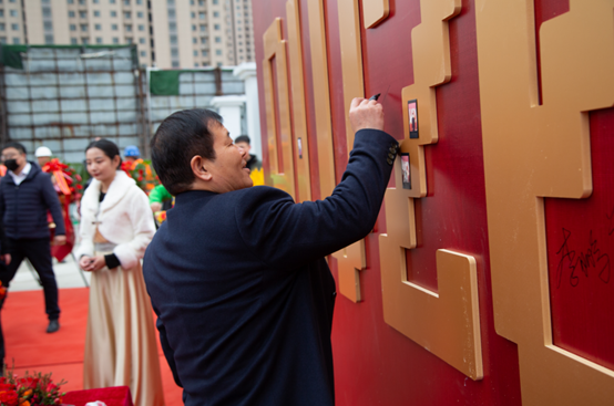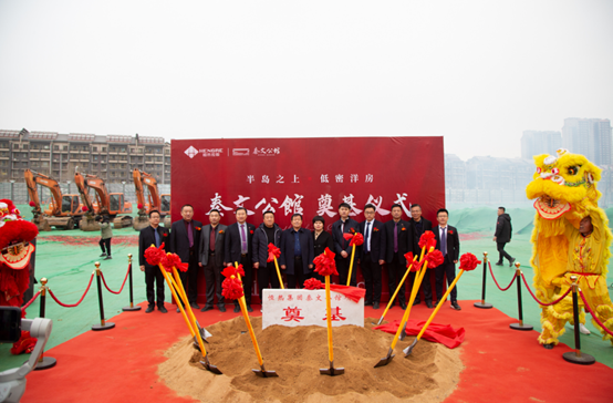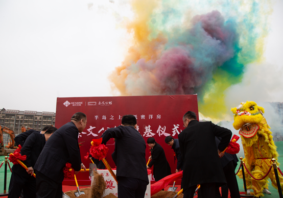 領導們的致詞表達了對項目的深切期望!吉時一到,在吉祥獅的帶領下,恒熱集團總裁楊寶江先生、恒熱集團總裁楊彬先生、恒熱投資控股有限公司執行總裁楊麗娜以及恒熱集團旗下各分公司高管等12位領導移步至奠基區,共同揮鍬鏟土標志著秦文公館項目正式奠基!現場鞭炮、禮炮齊鳴,彩煙飛揚,將儀式推向了頂點!