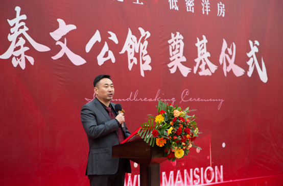 恒熱集團總裁楊彬先生首先登臺致辭。楊總首先向關心支持項目建設的各位領導、社會各界朋友表示衷心感謝。隨后楊總表示作為項目開發者,既感到使命偉大,又深感肩上的責任重大。同時表達對項目奠基的喜悅之情,更是寄予項目更高的期待,并對工程合作單位提出了高質高效的工程要求,努力把秦文公館項目打造成精心之作、經典之作、品牌之作、榮譽之作,向港城人民、向秦皇島市人民、向支持幫助我們的各級領導、各個單位,交上一份滿意的答卷!