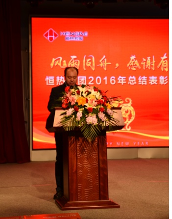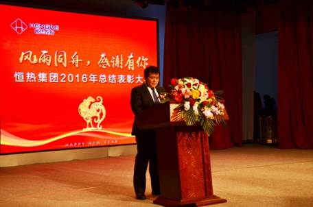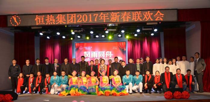 恒熱集團2016年度工作總結表彰大會暨新春聯歡會于2017年1月23日在集團多功能廳召開,集團總裁楊寶江先生、集團執行總裁高敏女士、集團工會主席劉桂權、集團副總裁劉大治、集團行政總監林皓、集團運營總監關軍、各子公司總經理及各級員工出席了本次大會。大會圓滿完成以下議程: 2016年工作報告;16年度總表彰; 簽署17年責任狀;新年聯歡會。會議由集團副總裁劉大志主持。