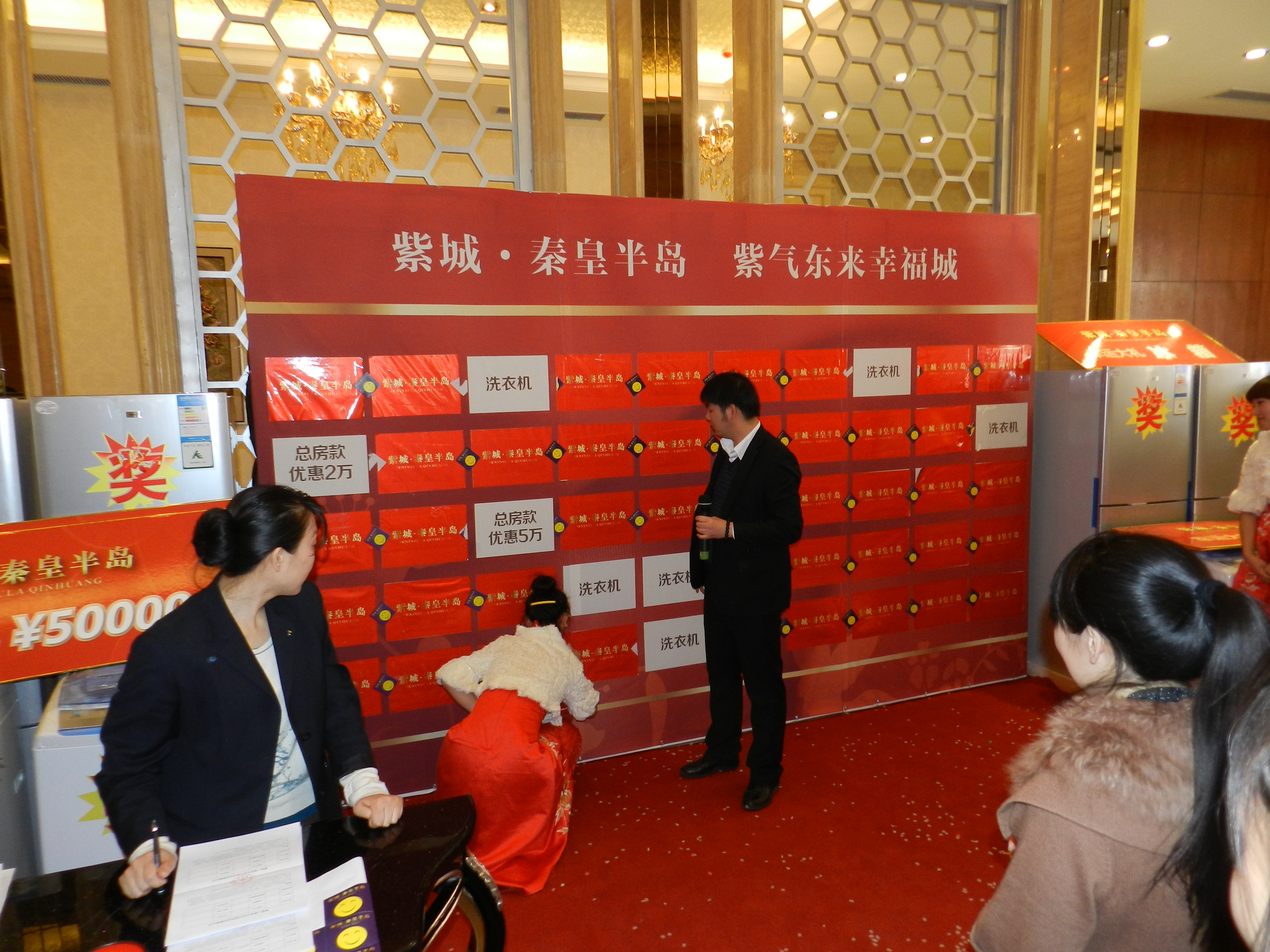 2013年4月20日,在紫城半島營(yíng)銷(xiāo)中心舉行了“紫城半島5號(hào)樓開(kāi)盤(pán)選房”活動(dòng),售樓部銷(xiāo)售現(xiàn)場(chǎng)人山人海,熱鬧非凡,再掀熱銷(xiāo)狂潮。公司為住戶舉行了現(xiàn)場(chǎng)抽獎(jiǎng)活動(dòng),設(shè)有洗衣機(jī)、冰箱、總房款優(yōu)惠2萬(wàn)、5萬(wàn)、10萬(wàn)等獎(jiǎng)項(xiàng),現(xiàn)場(chǎng)驚喜不斷,網(wǎng)易、騰訊、秦皇島晚報(bào)看房團(tuán)在現(xiàn)場(chǎng)參觀了樓盤(pán),并有一些人有了購(gòu)買(mǎi)意向。